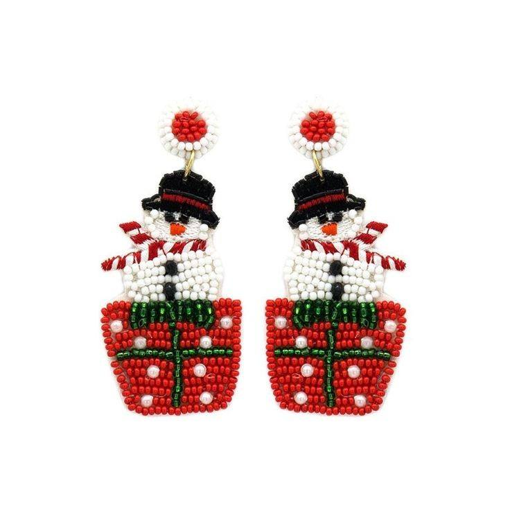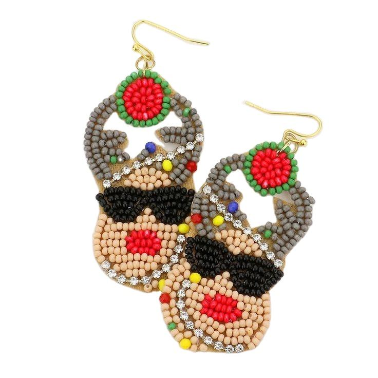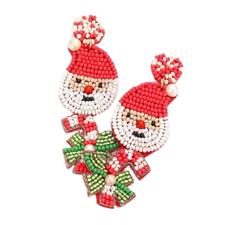 ต่างหูลูกปัดห้อยลูกปัดรูปซานตาคลอสด้านหลังผ้าสักหลาดลายตลกต่างหูลูกปัดแบบปักรายละเอียดเมล็ดพันธุ์