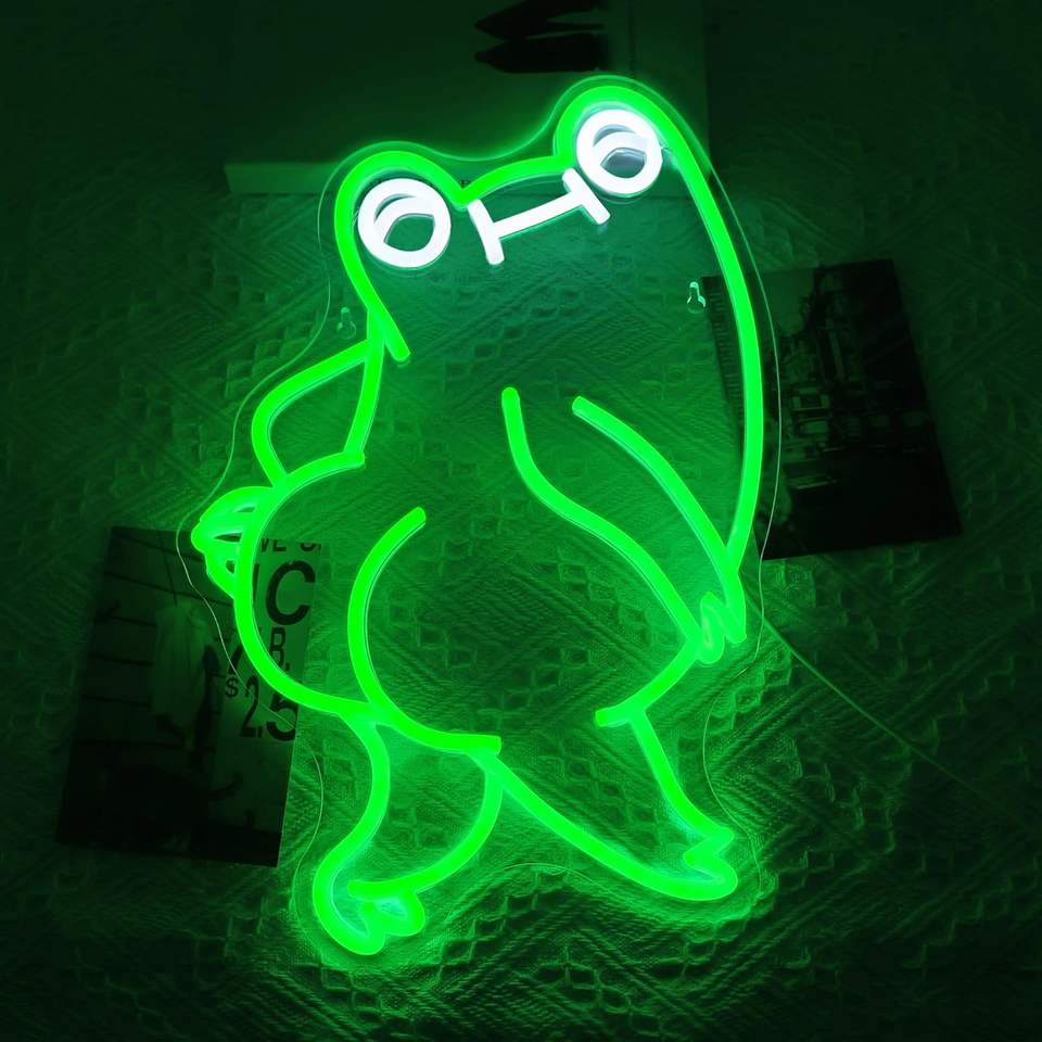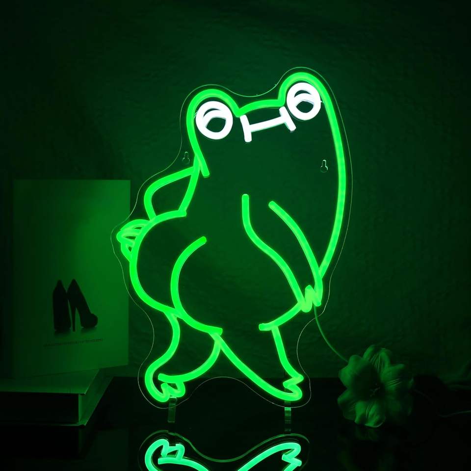 ป้ายไฟนีออนรูปกบตลก ไฟนีออน LED สำหรับตกแต่งผนัง ใช้พลังงานจาก USB โคมไฟห้องแมนเคฟ