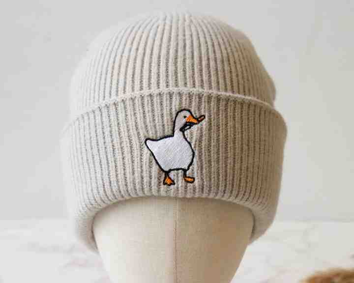 หมวกบีนนี่ปักโลโก้ห่านตลกหมวกถักให้ความอบอุ่นในฤดูหนาวคนรักสัตว์ผลิตจากเวียดนามสำหรับ L01ผู้ชายผู้หญิง
