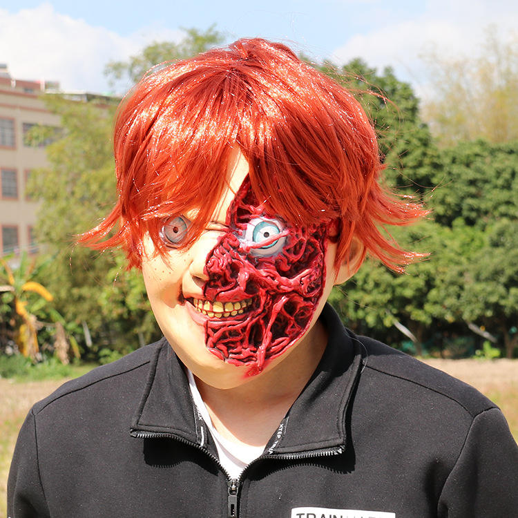 หน้ากากฮาโลวีนตลกๆ ขนาดเดียว วัสดุอีมัลชั่น อุปกรณ์ประกอบชุดปาร์ตี้ แต่งกาย หน้ากากคลุมศีรษะ