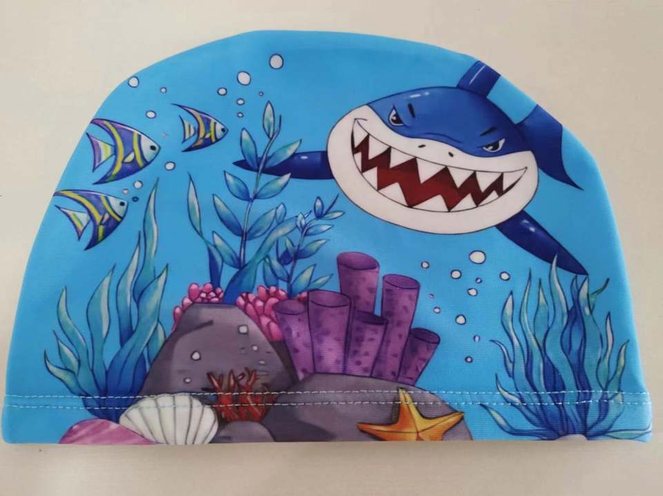 หมวกว่ายน้ำสำหรับเด็กและผู้ใหญ่หมวกว่ายน้ำลายการ์ตูนสีฟ้าสีชมพูสีเหลือง2024ออกแบบโลโก้ได้ตามต้องการ