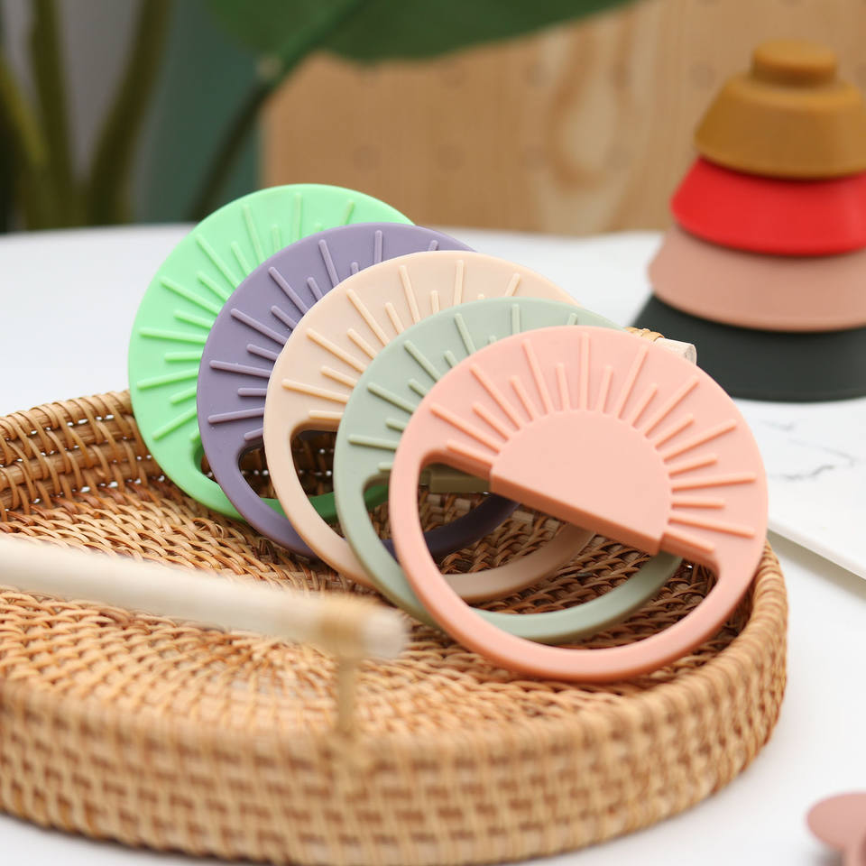 ยางกัดซิลิโคนรูปแดดพร้อมคุณสมบัติหลากสีของเล่นฝึกประสาทสัมผัสแบบนุ่มตามสั่ง