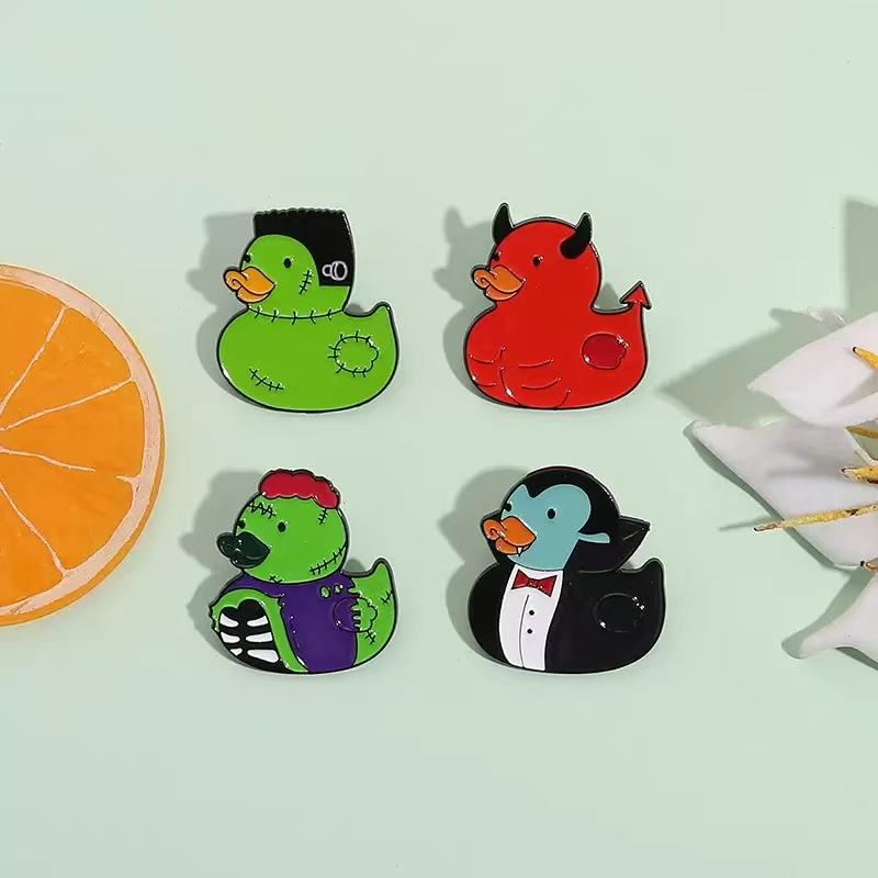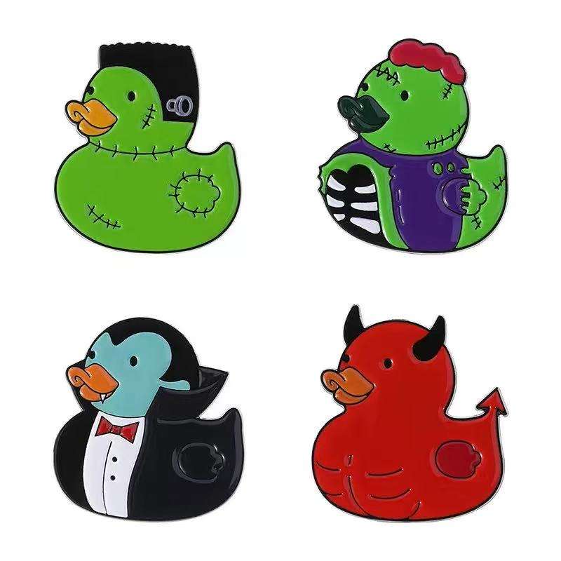 เข็มกลัดเป็ดขี้เหร่รูปการ์ตูนเป็ดสีเขียวขาโลหะสำหรับวันคริสต์มาสวันฮาโลวีนจบการศึกษาด้วยธีมนางฟ้า