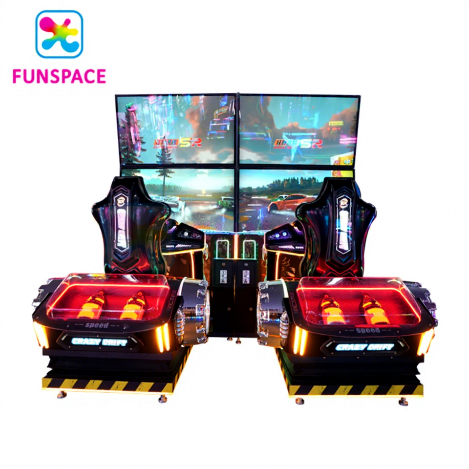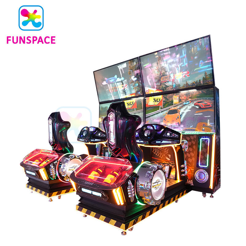 เครื่องเล่นเกมขับรถแบบหยอดเหรียญ Funspace Game Center สำหรับ 2 ผู้เล่น หน้าจอ HD 65 นิ้ว เครื่องเกมแข่งรถ