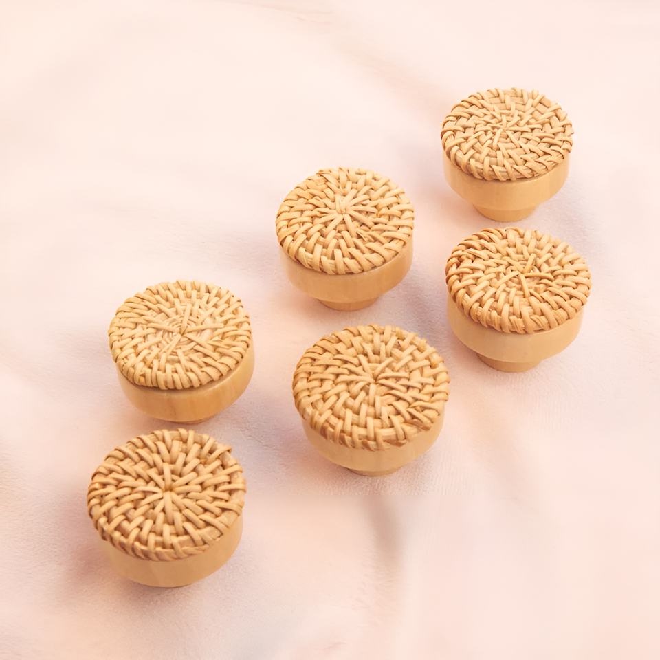 ลูกบิดประตูสำหรับตกแต่ง,มือจับประตูตู้ทำจากหวายมือจับลิ้นชักลูกบิดแบบธรรมชาติสำหรับตู้เก็บของ