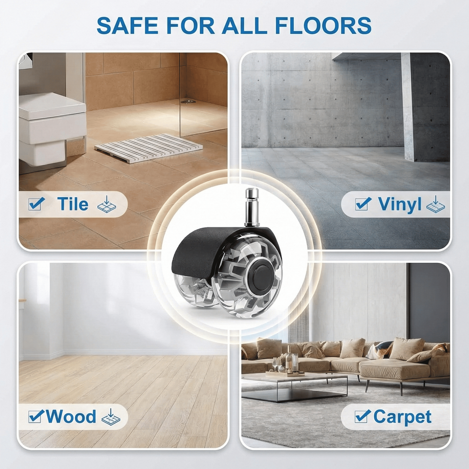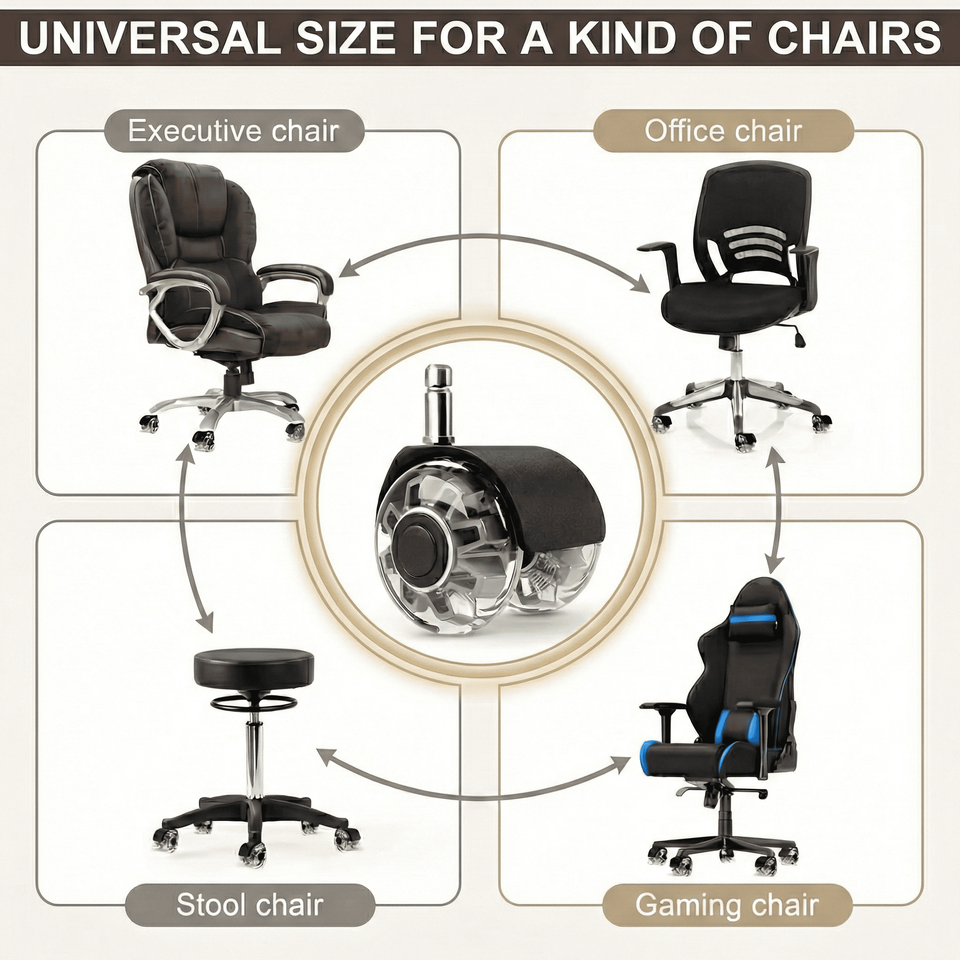 ล้อเฟอร์นิเจอร์อเนกประสงค์ ขนาด 2 นิ้ว แบบหมุนได้ ล้อคู่ โพลียูรีเทน PU เงียบ สำหรับเก้าอี้สำนักงาน