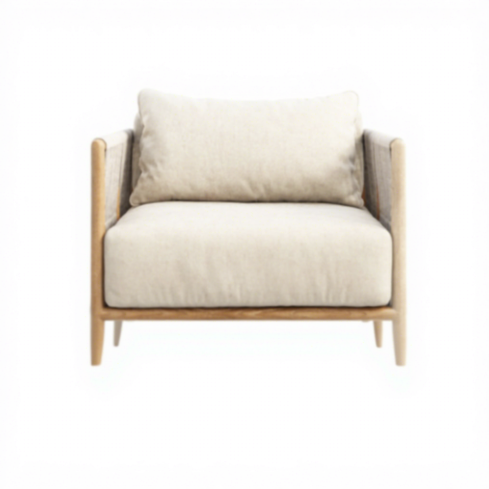 เฟอร์นิเจอร์เก้าอี้ห้องนั่งเล่นพร้อมโครงไม้และโฟมหนานุ่มผ้าเนื้อนุ่มดีไซน์เรียบง่ายและทันสมัย