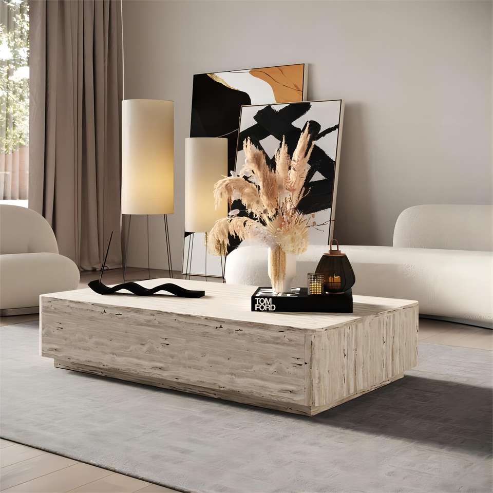 โต๊ะกาแฟทราเวอตินทรงสี่เหลี่ยมเฟอร์นิเจอร์ห้องนั่งเล่นขนาดกำหนดเองได้