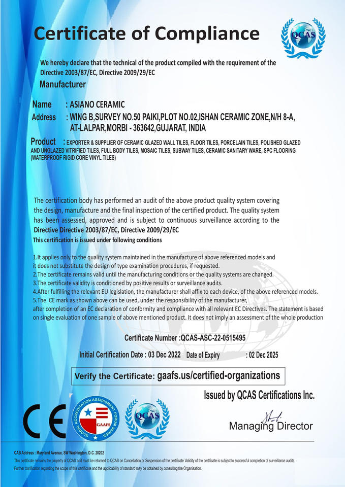 ชื่อแบรนด์:ASIANO CERAMIC