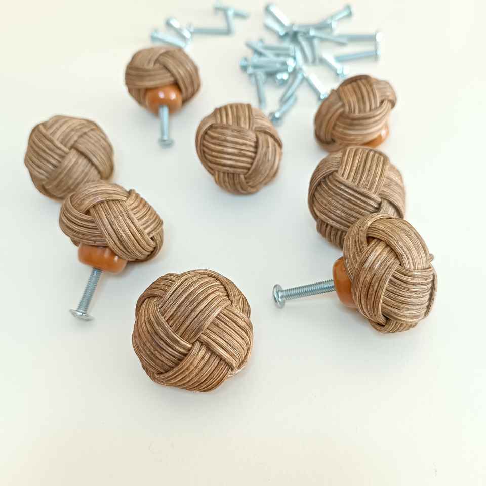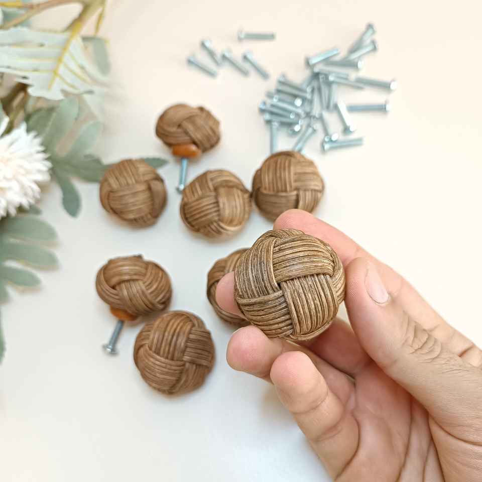 ลูกบิดมือจับและลูกบิดสำหรับเฟอร์นิเจอร์ทำจากหวายทอมือจากโรงงาน