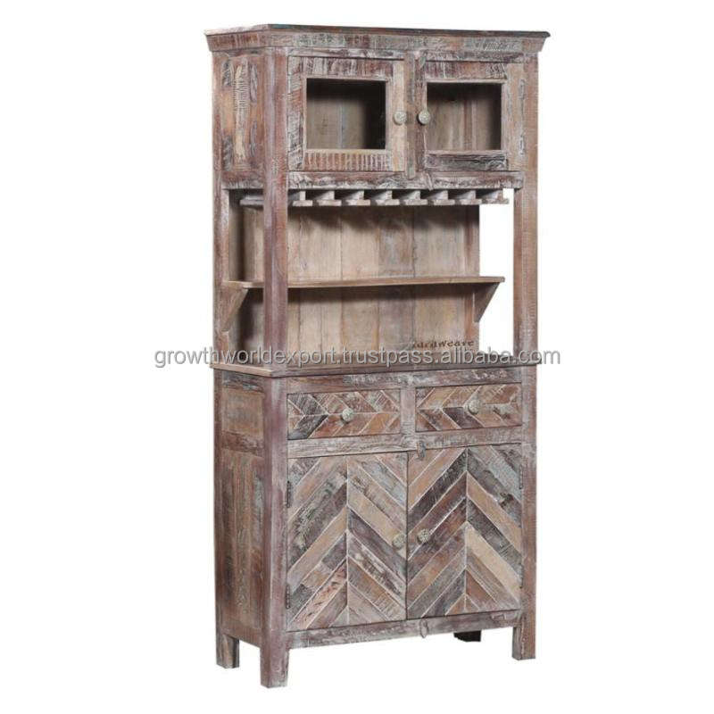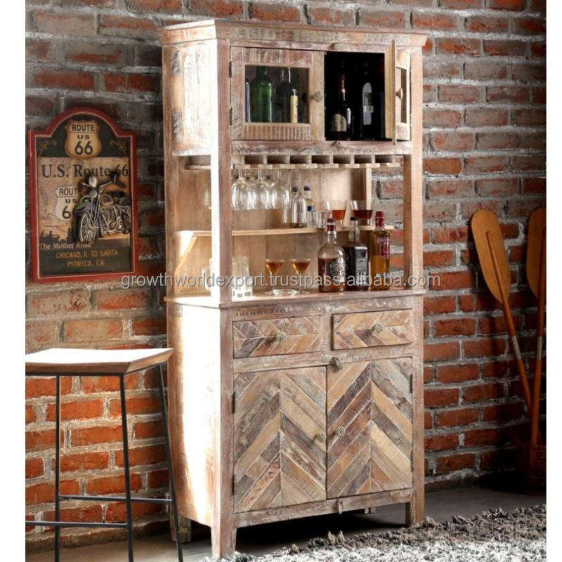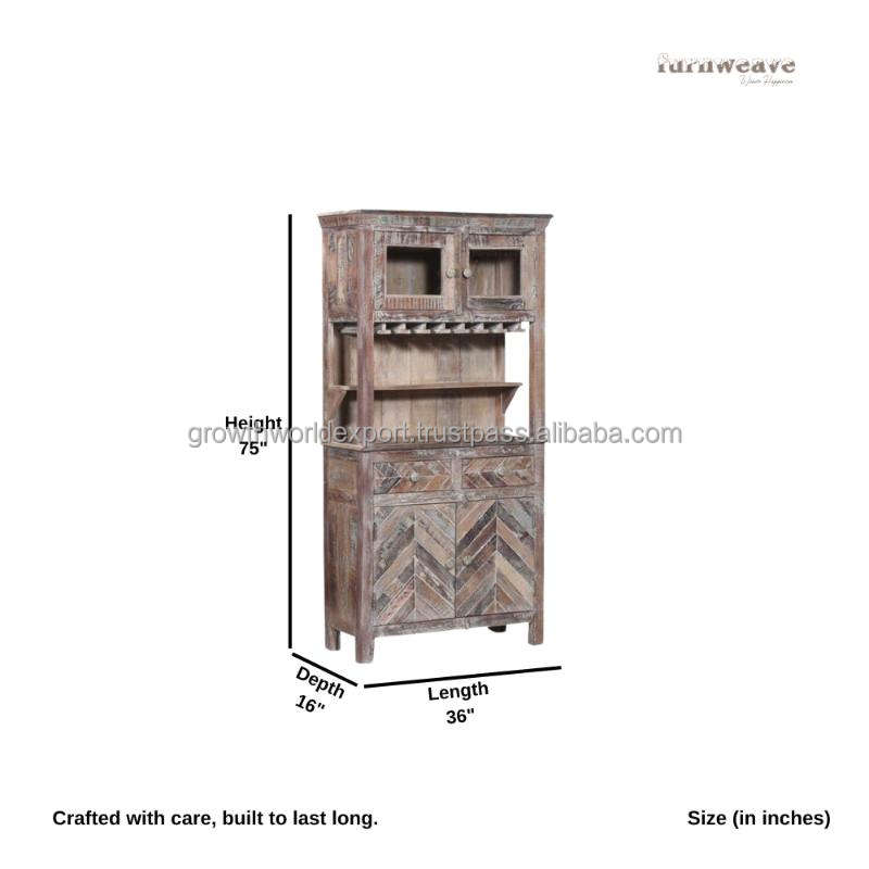 ตู้บาร์ไม้มะม่วง Furnweave Jett สีขาวโบราณ 2 ชั้น สไตล์โมเดิร์น