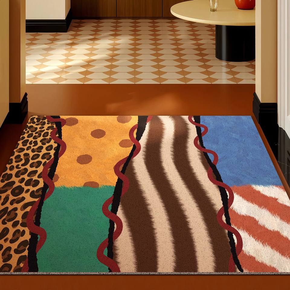 พรมเช็ดเท้าขนฟูแบบเย็บต่อกัน รูปทรงสี่เหลี่ยมผืนผ้า กันลื่น ผ้าไหมแบบวงกลม สำหรับทางเข้าบ้าน ห้องนอน ห้องครัว ห้องน้ำ ระเบียง