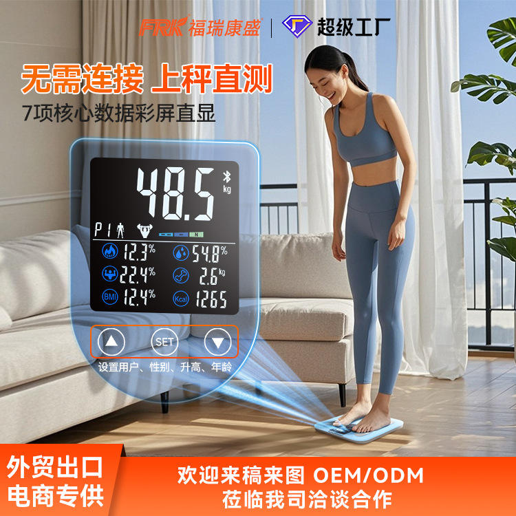 เครื่องชั่งน้ำหนักวัดไขมันในร่างกาย Furuikang รุ่นมืออาชีพ พร้อมหน้าจอ VA สีใหม่ และอินเทอร์เฟซบลูทูธ ฟังก์ชันวัดค่าดัชนีมวลกาย (BMI) รุ่นใหม่