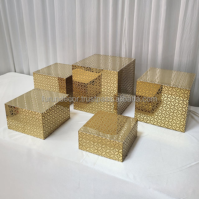 Furun ชุดโต๊ะบุฟเฟ่ต์โลหะสีขาว5ก้อนที่ยกสูงขึ้นสำหรับวางอาหารกล่องแท่นตั้งแสดงสำหรับงานเลี้ยง