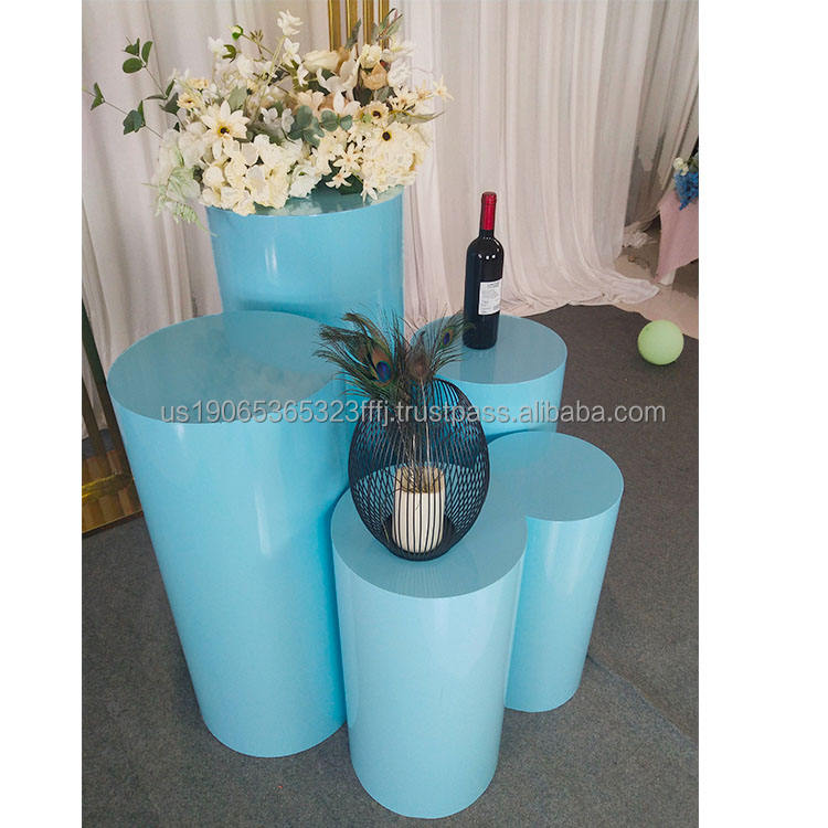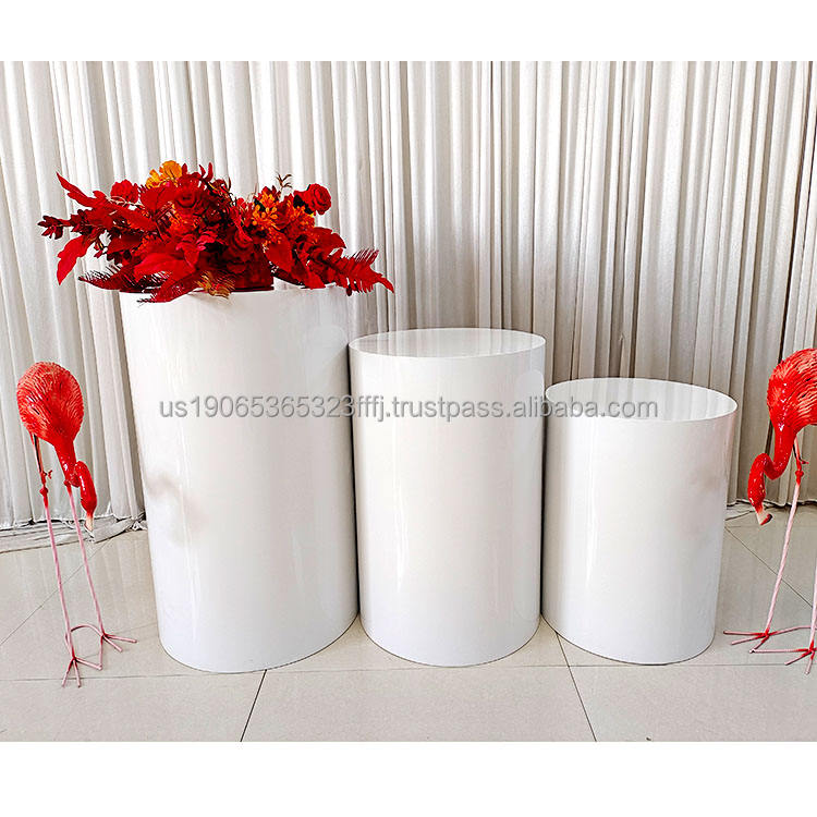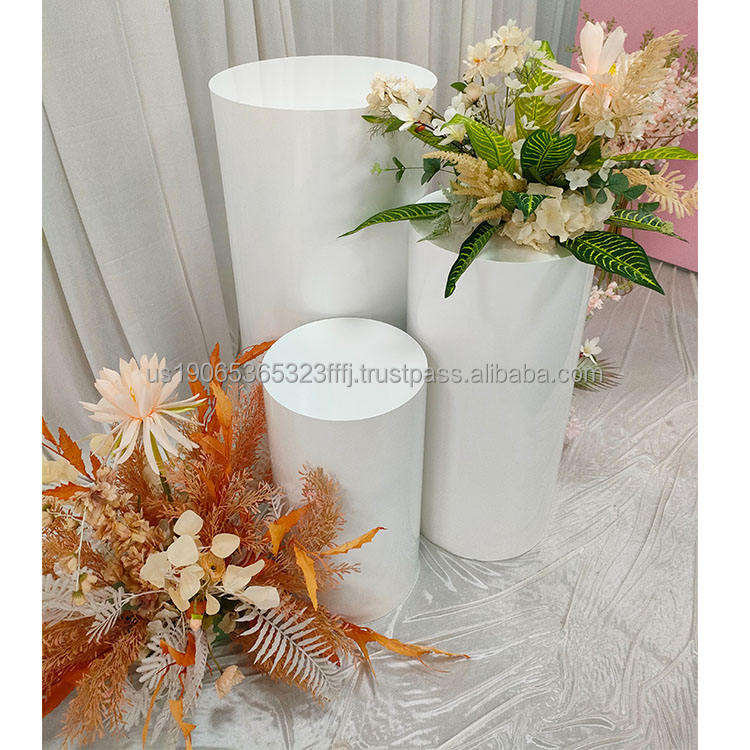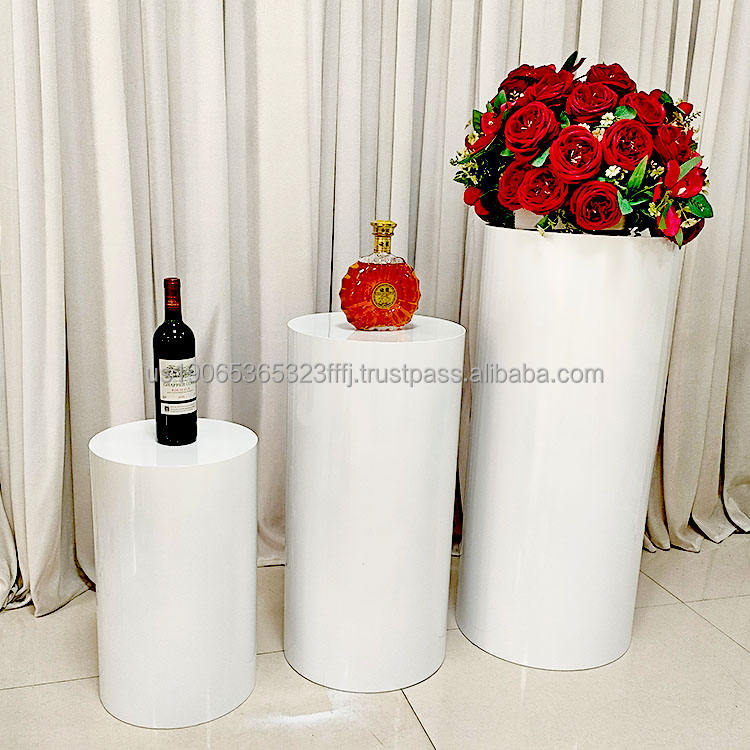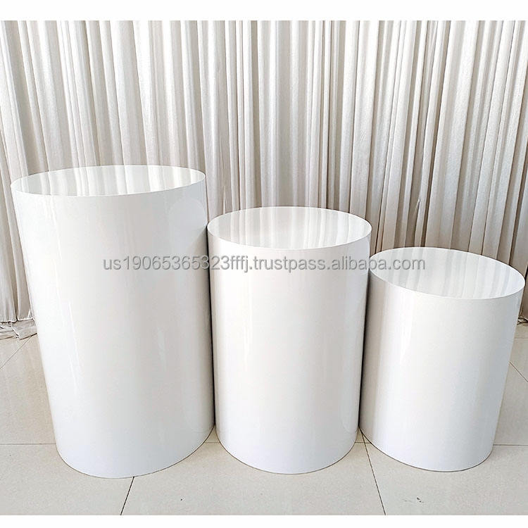 อุปกรณ์ตกแต่งงานแต่งงานสแตนเลส Furun ชุดฐานเค้กและอุปกรณ์ตกแต่งโต๊ะขนมทรงกระบอกสีขาว