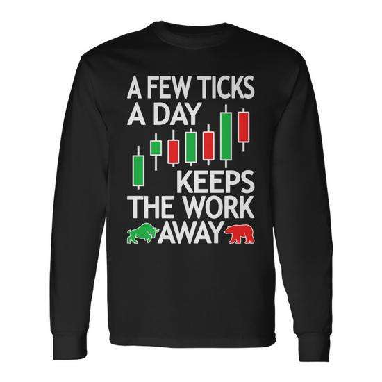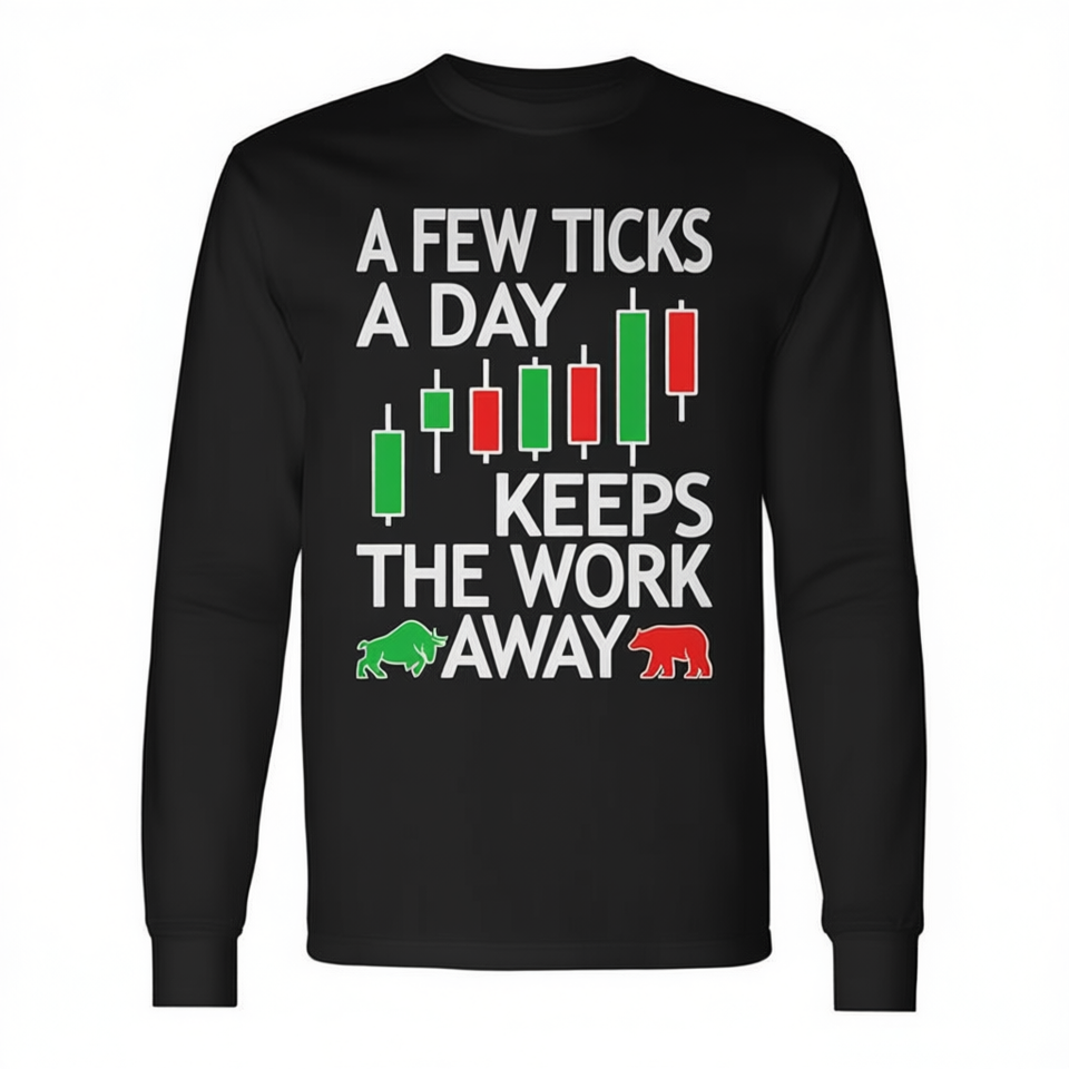 เสื้อยืดแขนยาวสำหรับนักเทรดฟิวเจอร์ส Future Trading Futures Trader ลาย "Few Ticks A Day Keeps Work Away"