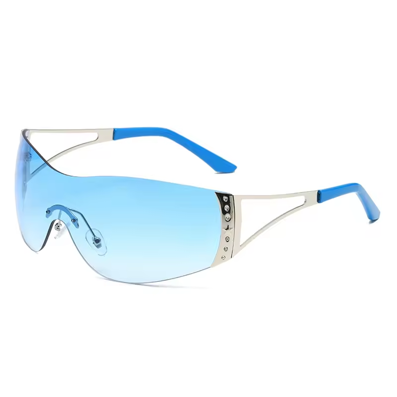 แว่นกันแดดแฟชั่นทรงดาวห้าแฉกเลนส์ชิ้นเดียวสไตล์ Y2K เมทัลลิก ยี่ห้อ Future Wind โพลาไรซ์ สำหรับยุโรปและสหรัฐอเมริกา