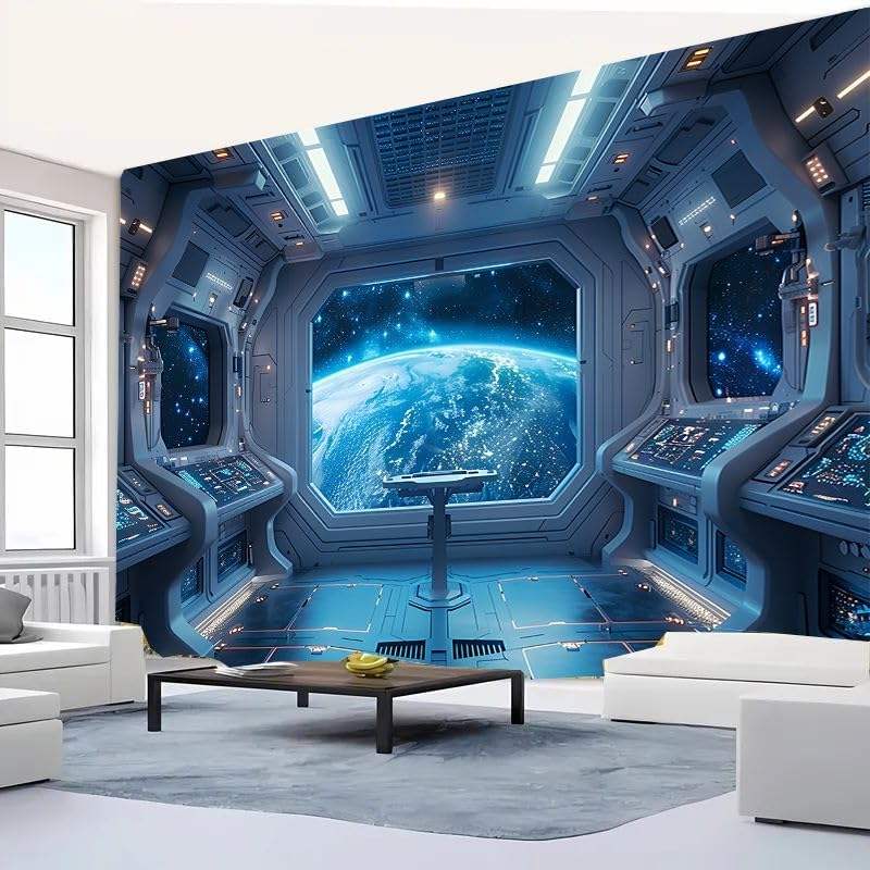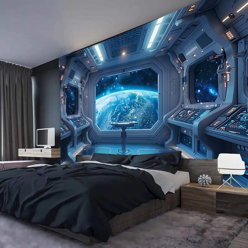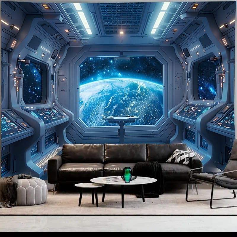 นิยายวิทยาศาสตร์แห่งอนาคตแขวนผนังยานอวกาศพรมพร้อมดาวเคราะห์สำหรับสถานีอวกาศกลางแจ้งและภายใน