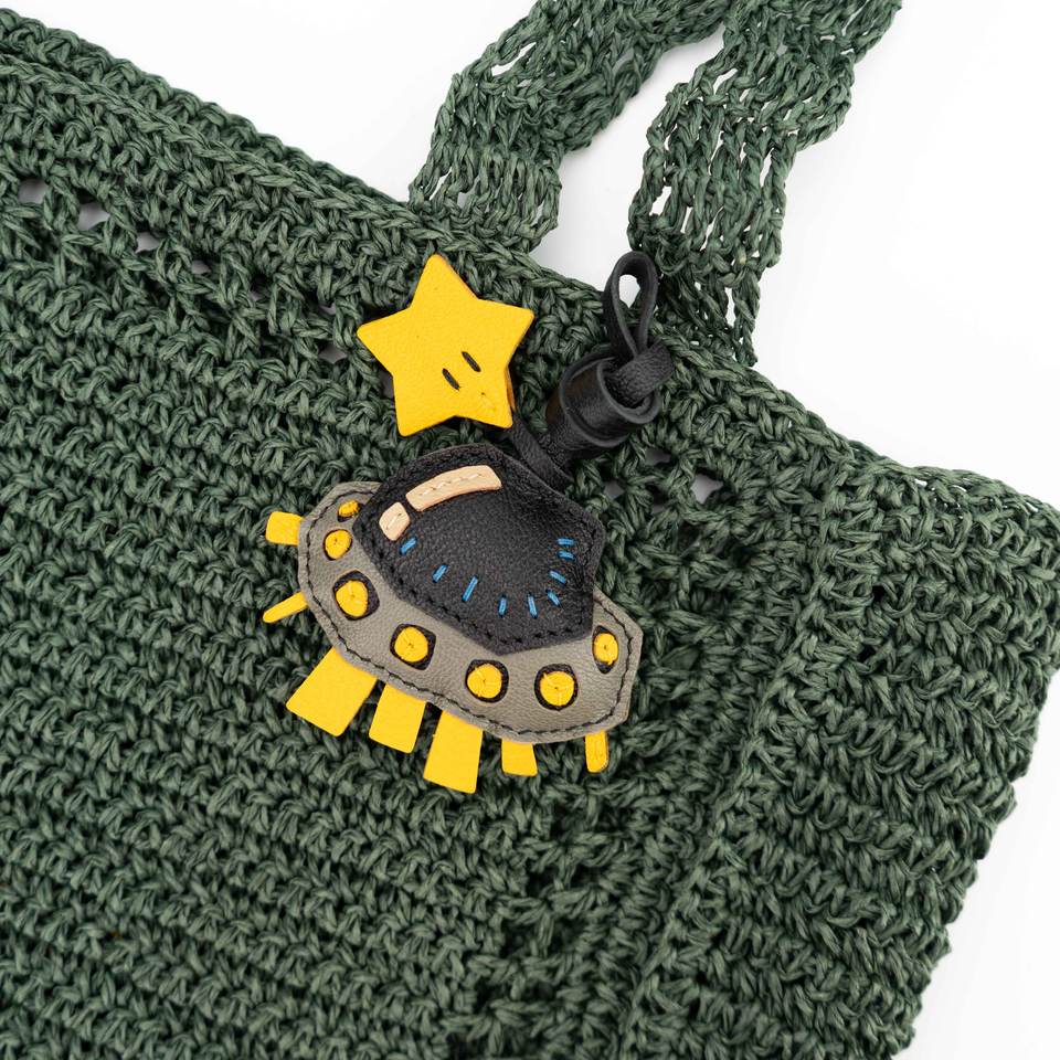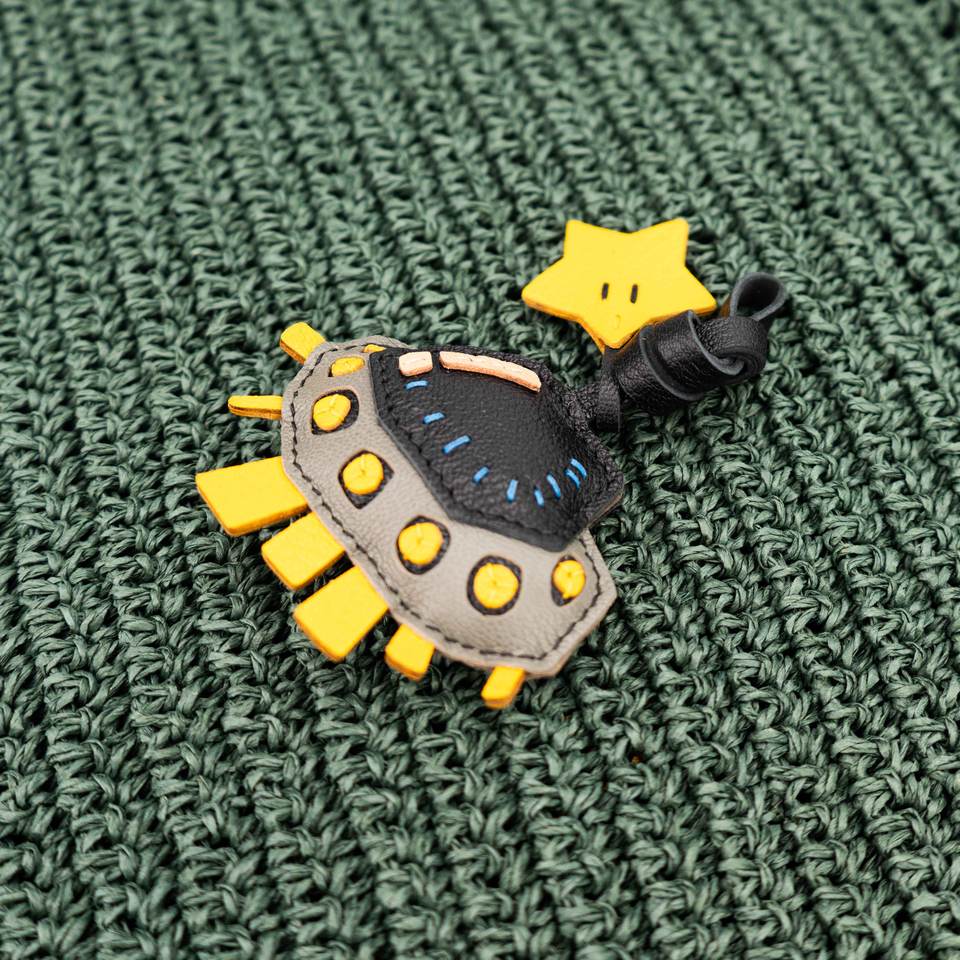พวงกุญแจหนังรูปยูเอฟโอสุดล้ำพร้อมลายดาว