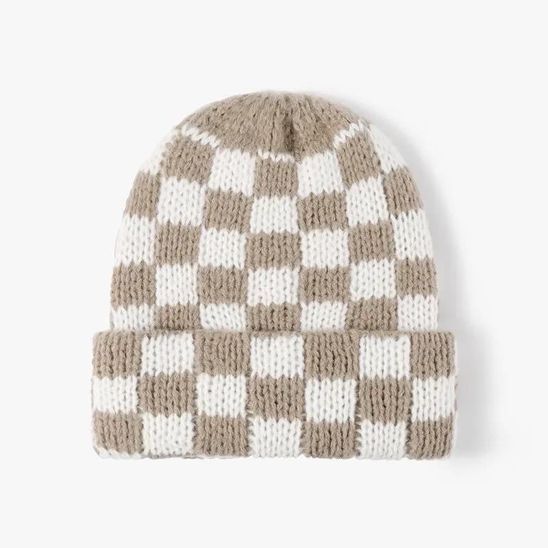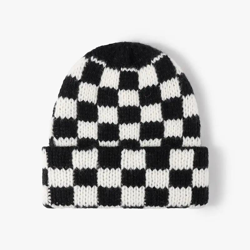 หมวกบีนนี่ผ้าขนแกะขนปุยอบอุ่นสำหรับเล่นสกีผ้าแจ็คการ์ด