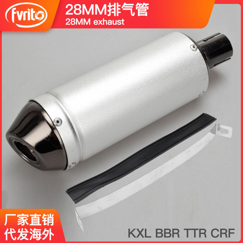 ท่อไอเสียรถจักรยานยนต์อะลูมิเนียม Fvrit ขนาด 28 มม. สีเงิน สำหรับรถออฟโรด ATV แบบดัดแปลง พร้อมแคลมป์และขายึด