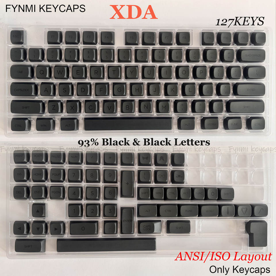 Fynmi ISO ANSI XDA 93% สีดำตัวอักษรสีดำ100% สี PBT Dye การระเหิด XDA สูง9.0มม. ปุ่มกดสำหรับ MX สวิตช์กล
