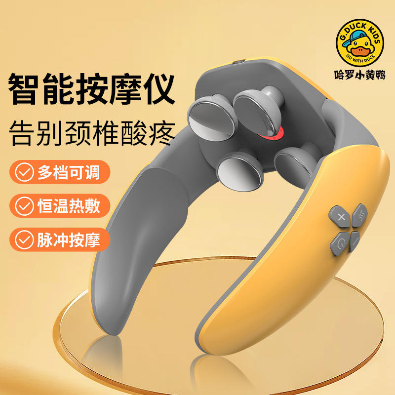 เครื่องนวดคอเด็กจีดั๊กสีเหลืองสีขาวชาร์จ USB ได้สำหรับบรรเทาอาการปวดคอที่บ้าน นวดได้นาน 15 นาที
