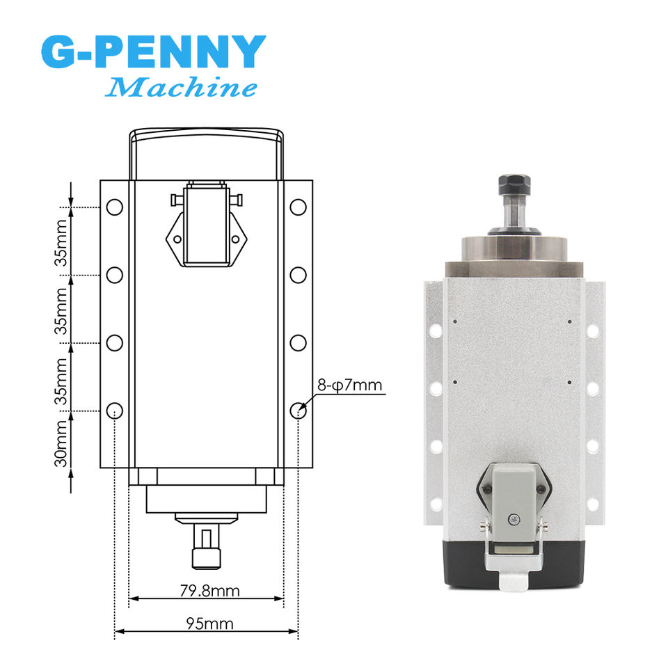 G-Penny แกนหมุน1.5KW ER11 220V 400Hz, มอเตอร์แกนหมุนแกนหมุนทรงสี่เหลี่ยมระบายความร้อนด้วยอากาศพร้อมหน้าแปลน4ชิ้นแบริ่ง24000รอบต่อนาที0.48N