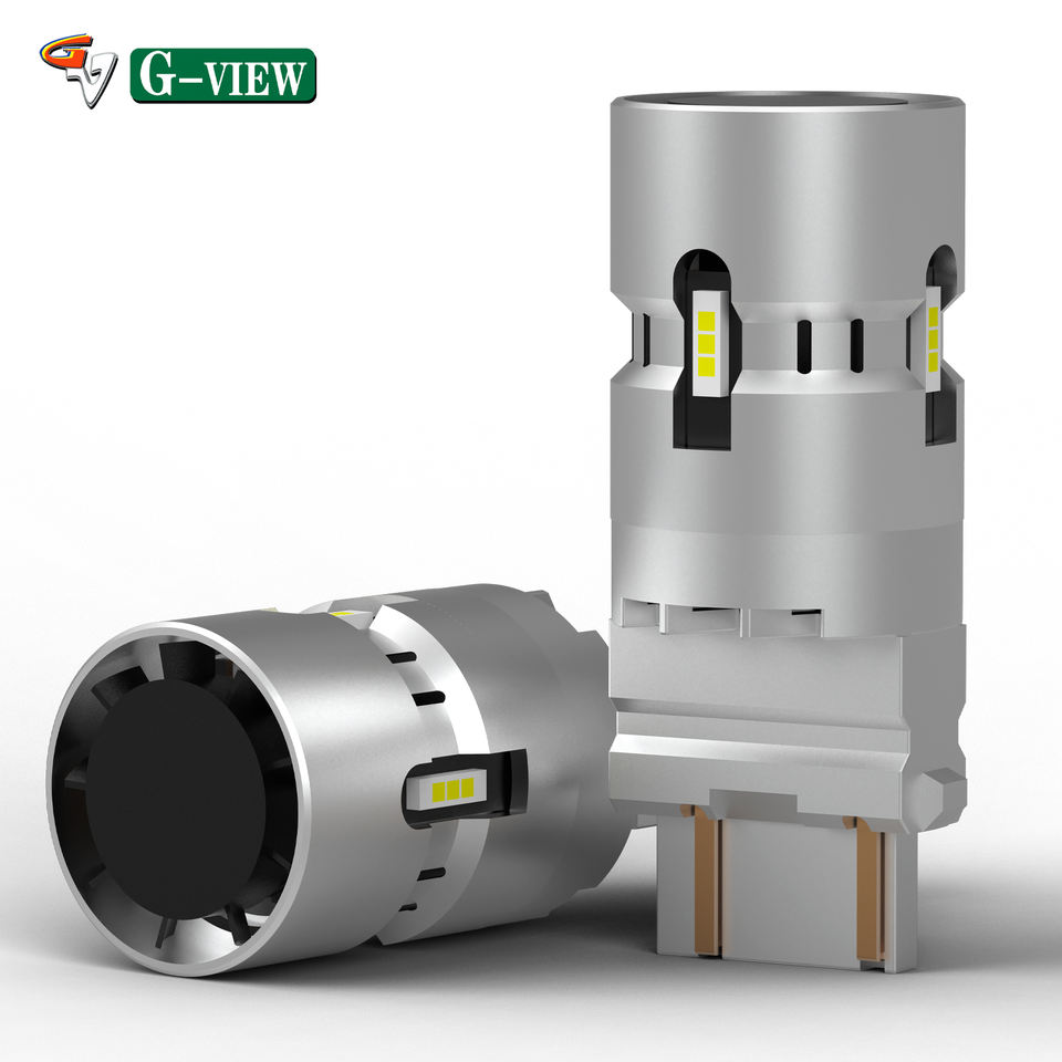G-View หลอดไฟ LED GSC-TP-3157 CANbus ไร้ข้อผิดพลาดมีสีขาวเหลืองสว่างมาก IP65กันน้ำหลอดไฟ LED T25 2000LM สำรอง