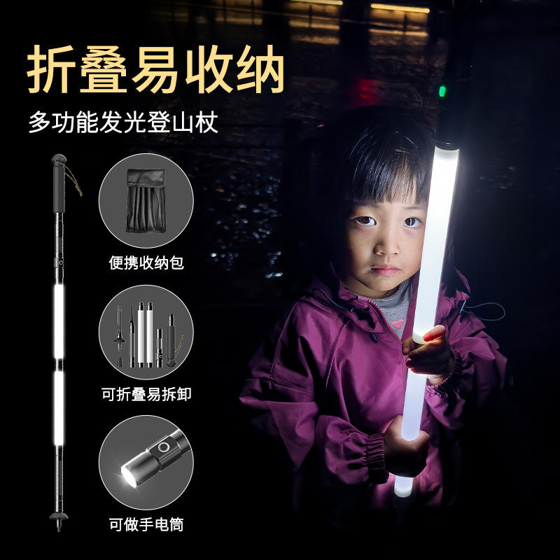 ไม้เท้าเดินป่าอเนกประสงค์ G03 5 ท่อน ทำจากอลูมิเนียมอัลลอย พร้อมไฟแบบชาร์จได้ พับเก็บได้ พกพาสะดวก