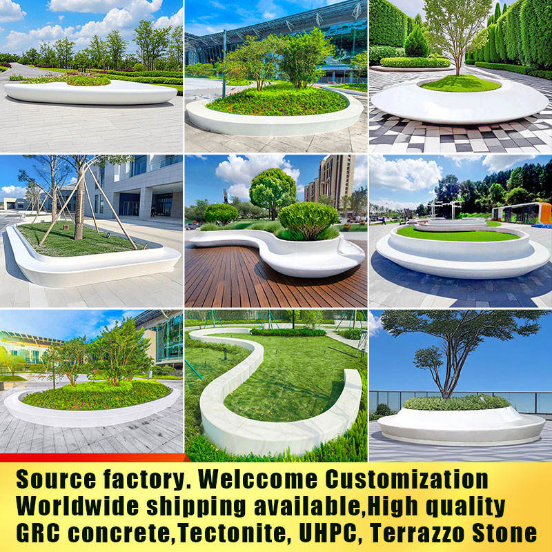 ม้านั่งปลูกต้นไม้คอนกรีต GRC โค้งมนทันสมัย G072 สำหรับตกแต่งภูมิทัศน์กลางแจ้ง เฟอร์นิเจอร์ถนนหรูหรา ทนทานต่อรังสียูวี ขนาดสั่งทำได้