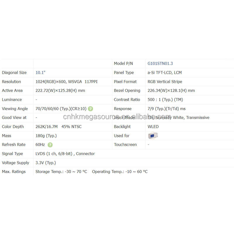 หมายเลขรุ่น: G101STN01.3