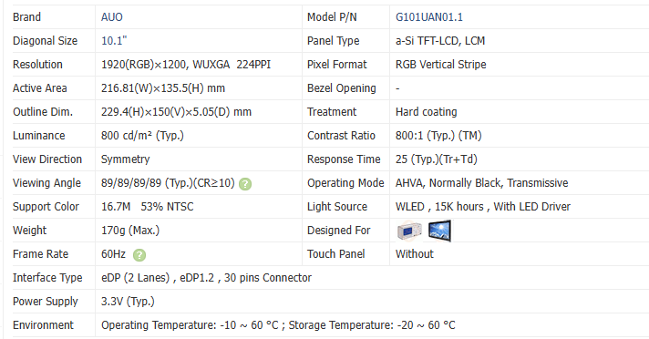 ขนาดหน้าจอ:10.1 นิ้ว
