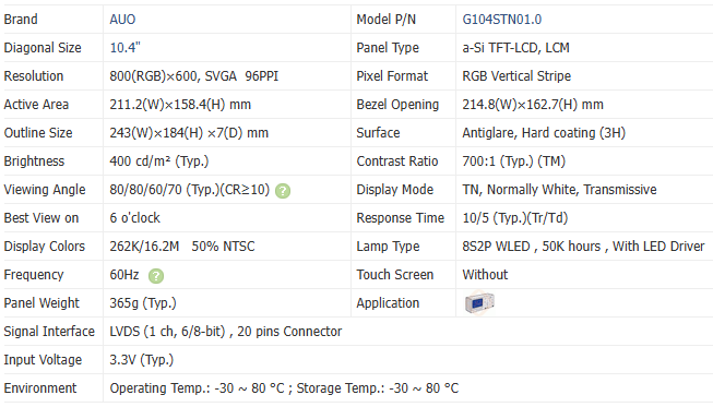 Model:G104STN01.0