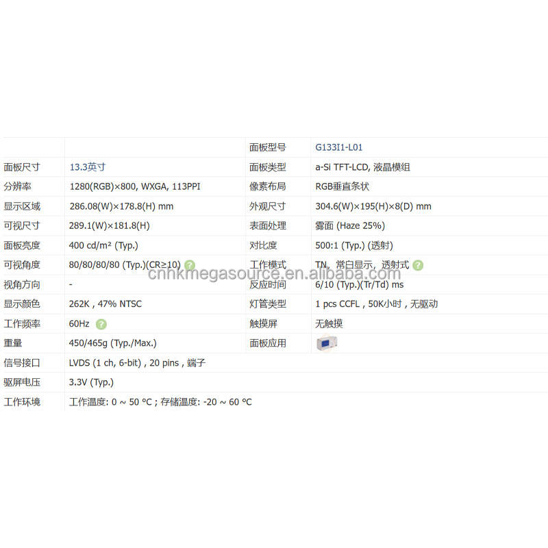 G133I1-L01 Innolux LCD โมดูลผลึกเหลว13.3นิ้วแผงแอลซีดีโมดูล1280*800 LVDS LCD