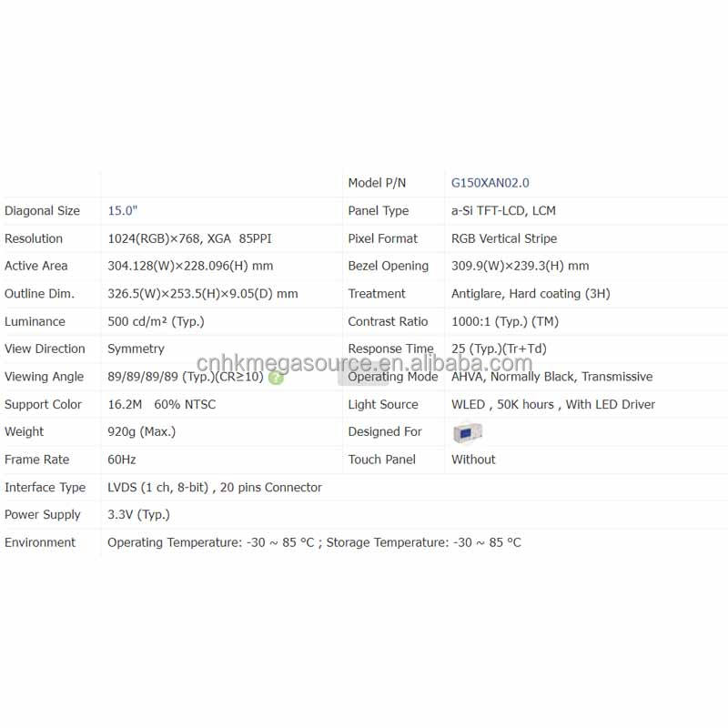 Model:G150XAN02.0