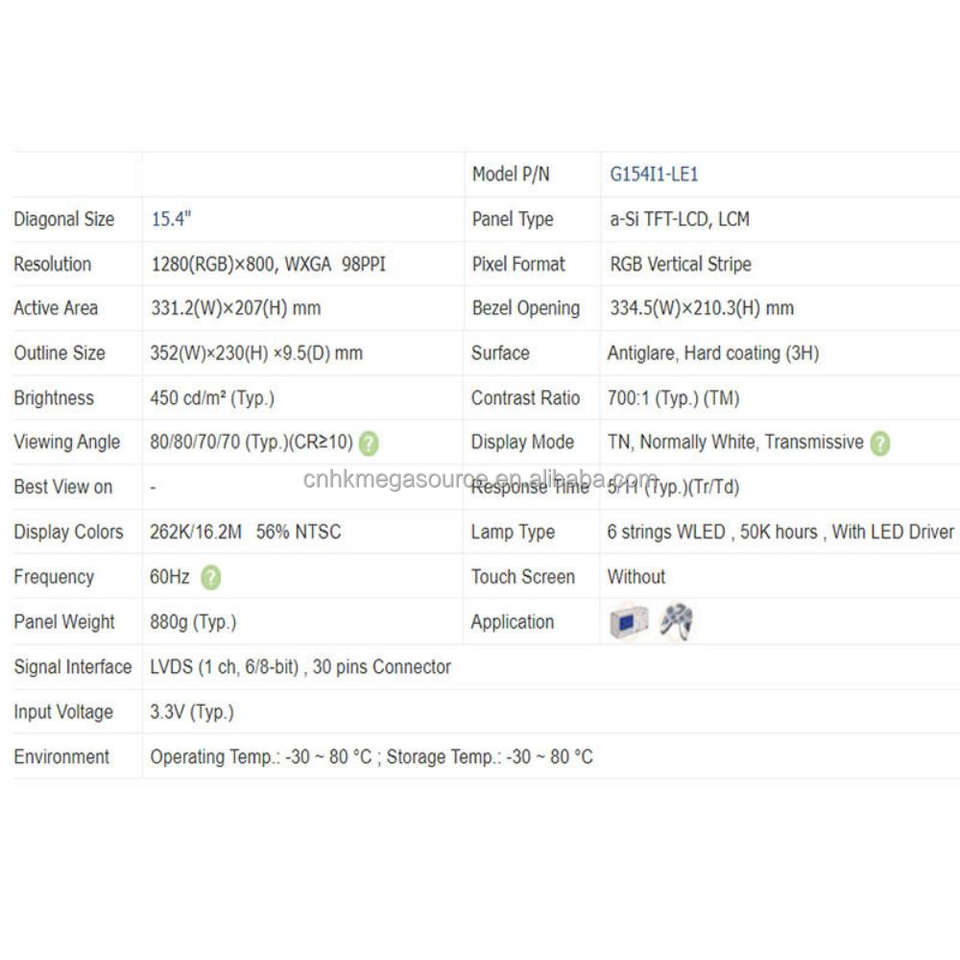 G154I1-LE1 Innolux 15.4 inch Resolution 1280*800 shipped after passing all tests LCD Display Screen