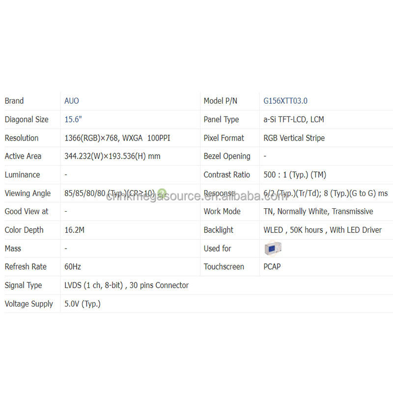 G156XTT03.0ใหม่15.6นิ้ว g156xtt03.0แสดงผล LCD ขนาด1366*768