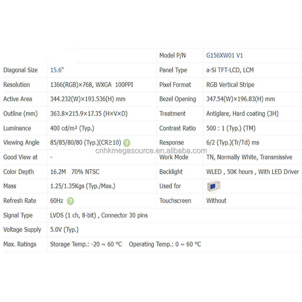 G156XW01 V1ชื่อแบรนด์