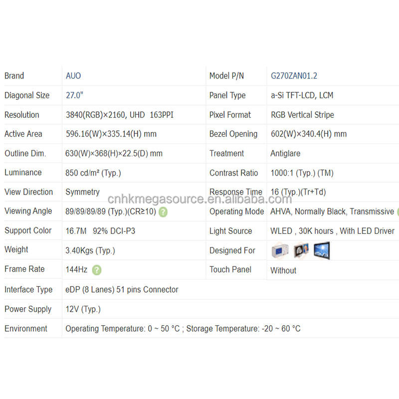 G270ZAN01.2 จอแสดงผล LCD ขนาด 27 นิ้ว ความละเอียด 3840*2160 ของแท้ใหม่แกะกล่อง