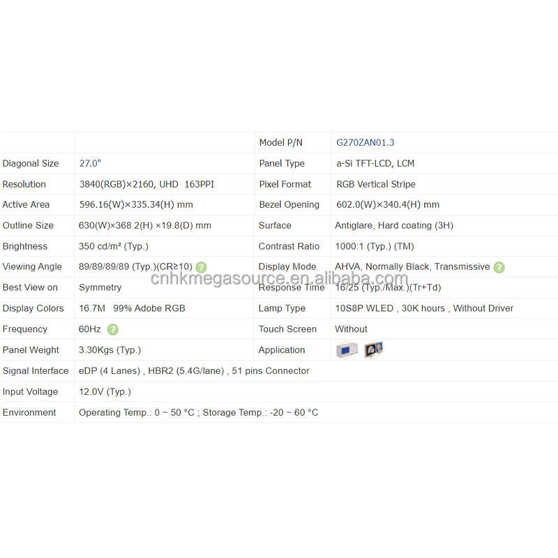 G270ZAN01.3 AUO จอแสดงผล27นิ้วความละเอียด3840*2160แหล่งอุตสาหกรรมจอแสดงผล LCD ใหม่เอี่ยม