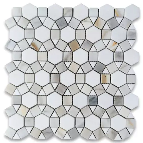 G395XP calacatta แหวนทานตะวันหกเหลี่ยมหินอ่อนทองกระเบื้องโมเสควอเตอร์เจ็ทผลิตภัณฑ์พรีเมี่ยมประเภทกระเบื้อง