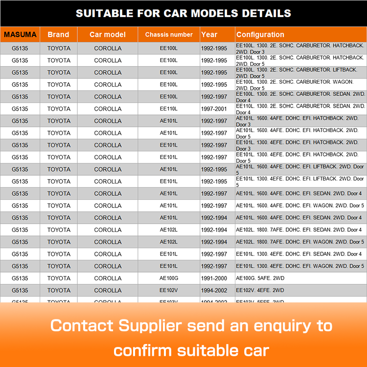 | Toyota | COROLLA (_E11_) | 1997-2002 |