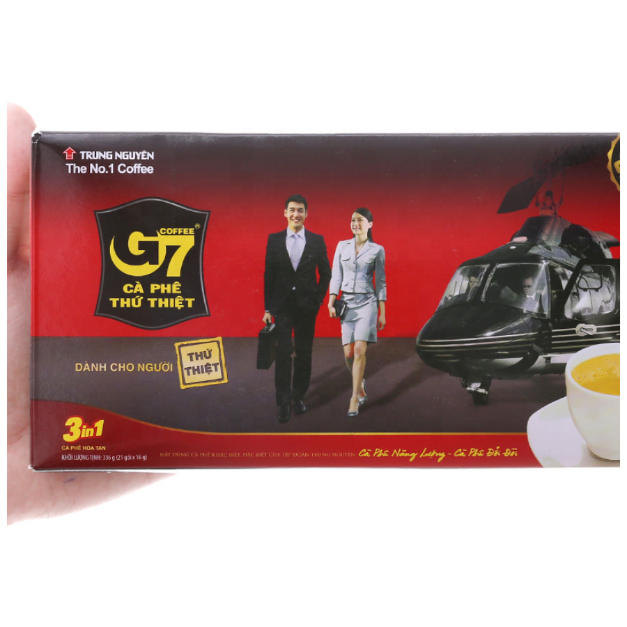 กาแฟสำเร็จรูป G7 3-in-1 ขนาด 16 กรัม บรรจุในซอง ยี่ห้อทรุงเหนียน จากประเทศเวียดนาม