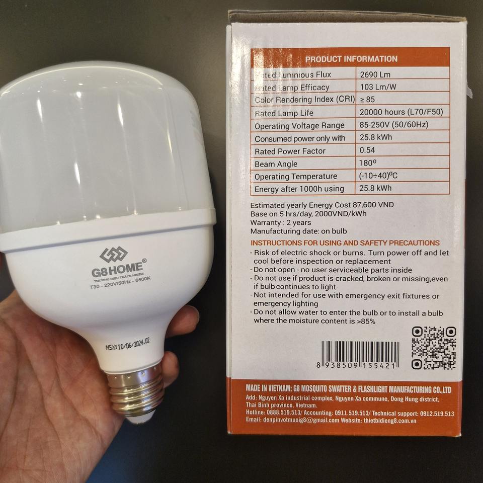 G8 HOME หลอดไฟ LED 15W DOB CRI>84 6500K 220V อะลูมิเนียม ฐาน E27/B22 อายุการใช้งาน 20000 ชั่วโมง 95 ลูเมน/วัตต์ 1370 ลูเมน รับประกัน 2 ปี