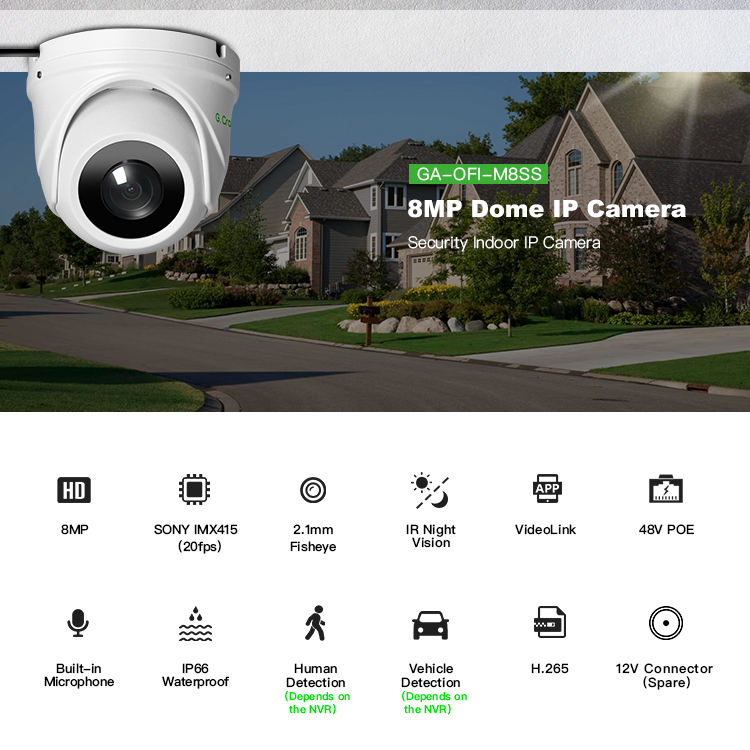 กล้องวงจรปิดโดม GA-OFI-M8SS เซ็นเซอร์โซนี่กล้องวงจรปิดรักษาความปลอดภัยแบบพาโนรามา4K 8MP พาโนรามา2.1มม. มุมมองกว้างเครือข่ายแบบฟิชอาย