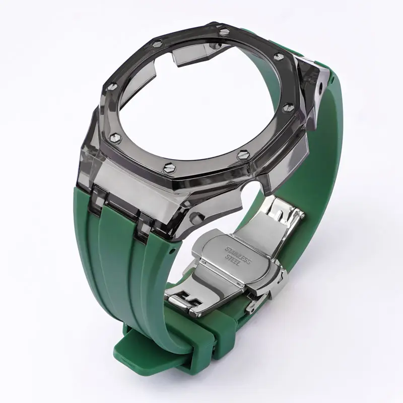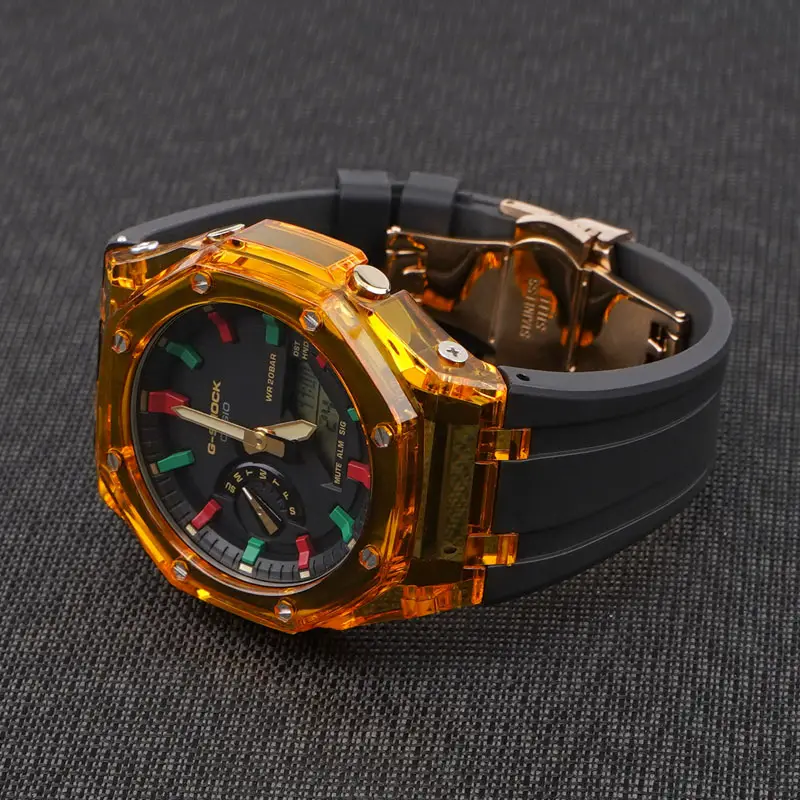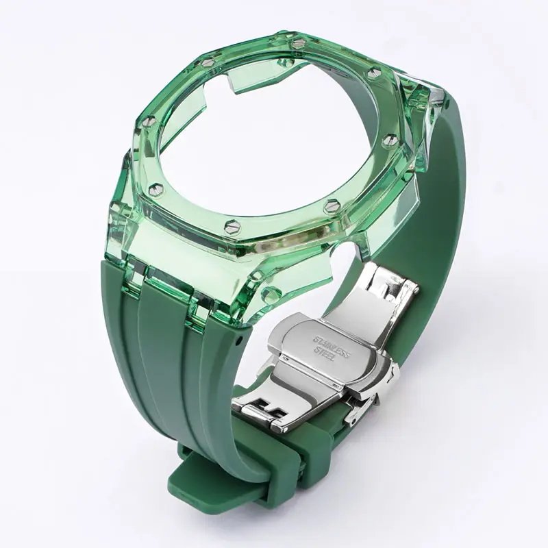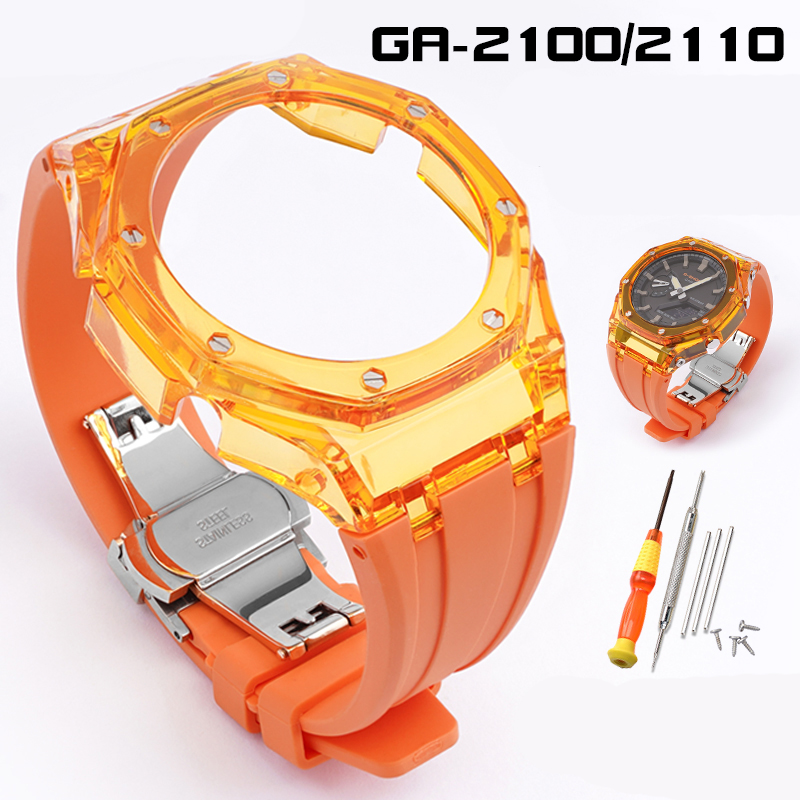 ชุดดัดแปลง GA2100 G-SHOCK เคสใสแบบ PC สายนาฬิกาโลหะแบบหัวเข็มขัดผีเสื้อ สายยางสำรองสำหรับนาฬิกา Casio GA-2100 2110