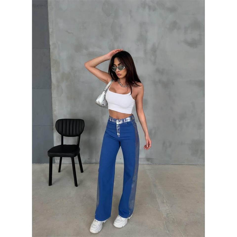 GABARDN PALAZZO PANTOLON-Breathable Korean Style Dress Pants for Women Wide-Leg 3XL Size Colored Wash Striped for Office