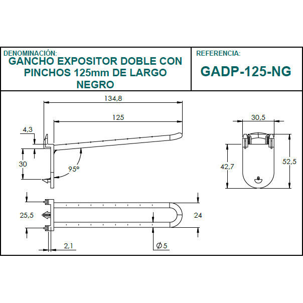 GADP-125-NG ตะขอคู่กับ spikes 125มม. สีดำจอแสดงผลขายปลีก