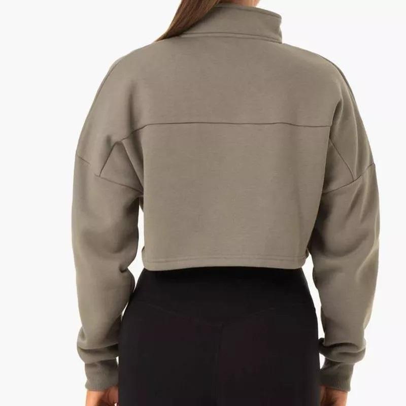 GAF โลโก้ที่กําหนดเองสบายๆธรรมดาครึ่งซิปขึ้นดึงกว่าสาวผู้หญิงออกกําลังกายแขนยาวกว่าขนาดเสื้อฮู้ด